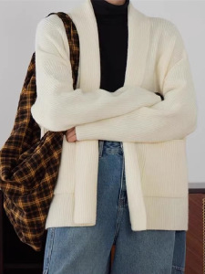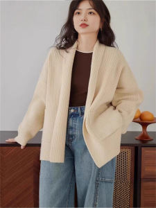 针织毛衣外套跨境外贸秋冬新款宽松慵懒加厚中长款针织开衫上衣女