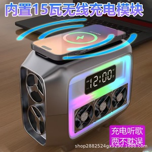 外贸私模蓝牙音箱支持时钟手机无线充双喇叭多功能重低音立体声