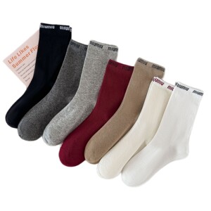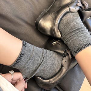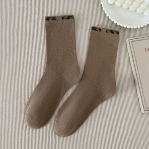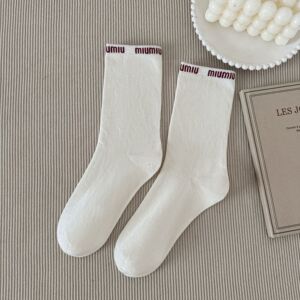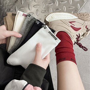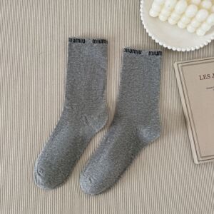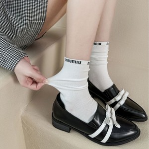 袜子女春秋款中筒袜miu系字母小众堆堆袜格雷系高街ins潮黑白长袜