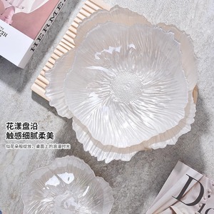 北欧现代花朵果盘沙拉盘珠光玻璃水果盘套装高颜值简约糖果零食盘