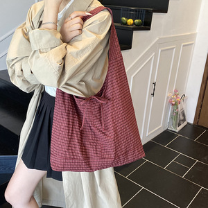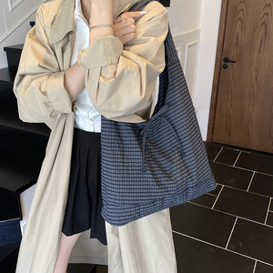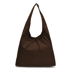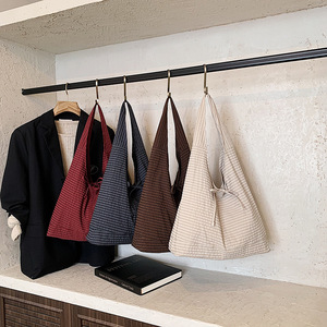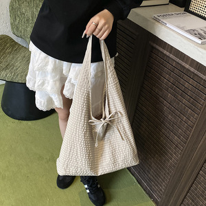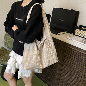 韩国新款法式蝴蝶结绑带包休闲泡泡格布包大容量手提托特包单肩包