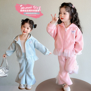 女童春秋套装2025新款女宝宝连帽开衫外套洋气可爱长袖长裤两件套