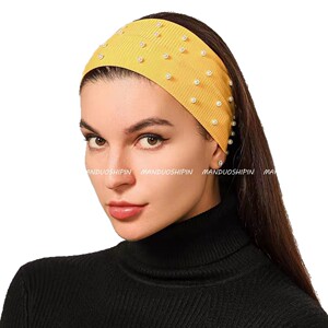 跨境亚马逊纯色简约发带钉珠百搭时尚头饰宽边弹力复古透气束发带