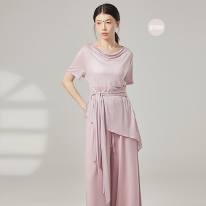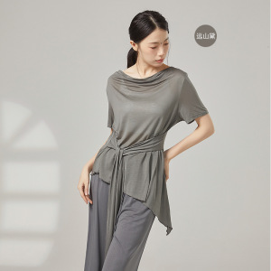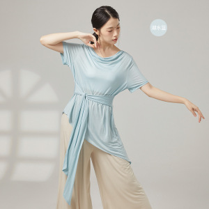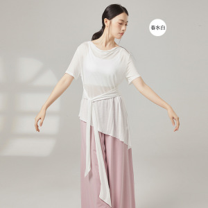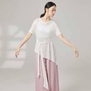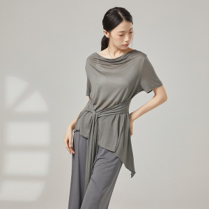 现代舞气质荡领短袖t恤女夏季设计感小众绑带收腰独特别致舞蹈服