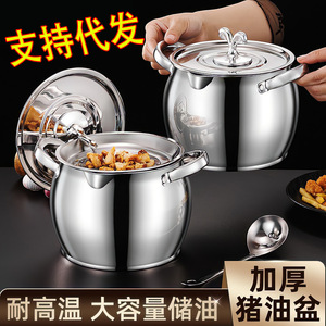 不锈钢猪油盆大容量储油桶油鼓盆带盖厨房带过滤网大号猪油罐