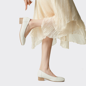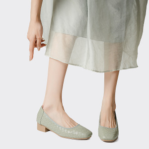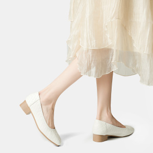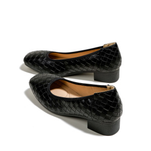 法式复古编织羊皮贵妇鞋粗跟中跟奶奶鞋超舒适软底软面防磨脚一脚