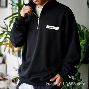 海外服装 秋冬新款潮牌Jac经典织带小刺绣字母半拉连卫衣(有原标)