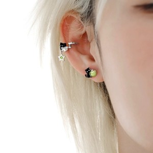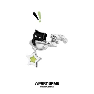 敲可爱!原创无耳洞黑猫青苹果耳夹高级感耳骨夹甜酷星星耳挂耳饰