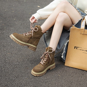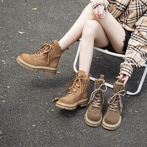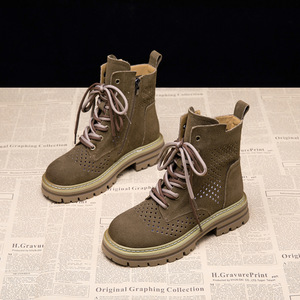 户外镂空马丁靴女2025新款夏季透气超火小短靴真皮棕色西部牛仔靴