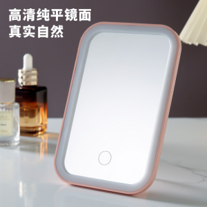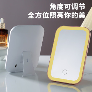led化妆镜三色灯方形桌面台式补光镜学生宿舍梳妆镜高清美妆镜