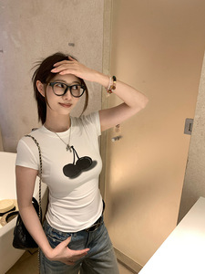 EKOOL衣库凉感冰肤科技棉·樱桃印花短袖T恤女夏修身显瘦圆领上衣