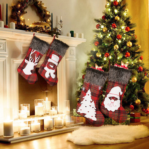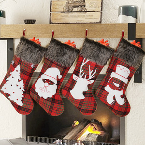 跨境圣诞节装饰袜 大号礼物袜 复古风格装饰格子袜 圣诞家居挂件