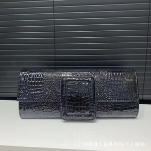 ヨーロッパとアメリカのクロコダイル柄レザーレディースクラッチバッグ高貴で豪華な大スペースコインポジションコンパートメントクラッチバッグ