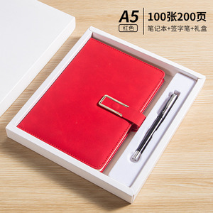 高档礼盒【窗花扣】红色本子+金属笔+黑色礼盒