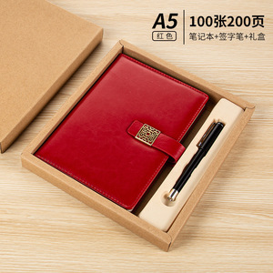经济礼盒【窗花扣】红色本子+中性笔+卡其色礼盒