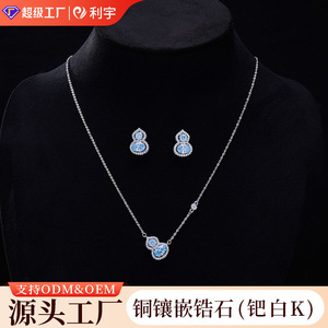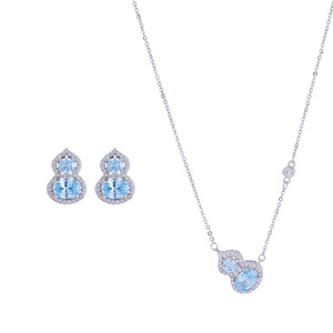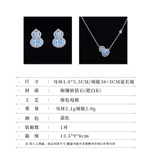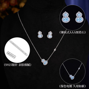 爆闪蓝葫芦项链小众高级感蓝色锆石福禄锁骨链清新浅蓝满钻耳环