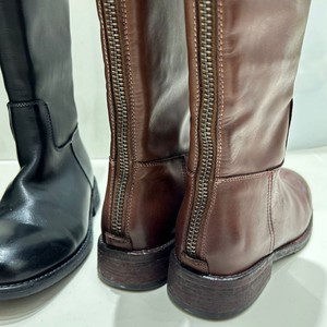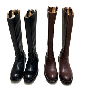 真皮套筒搭扣2025新款女头层牛皮高筒圆头长靴中粗跟欧美骑士靴
