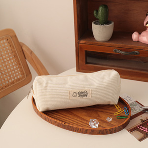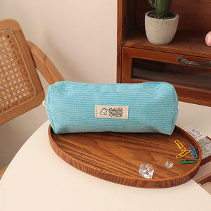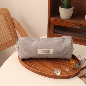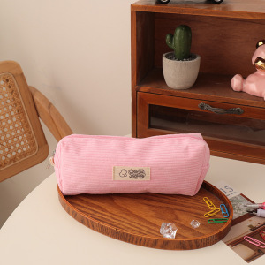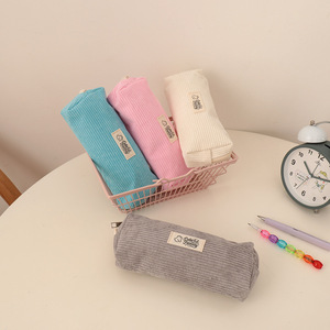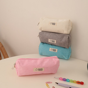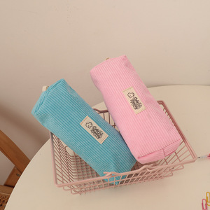 新款灯芯绒刺绣笔袋中小学生可爱熊四方高颜值文具收纳袋文具盒