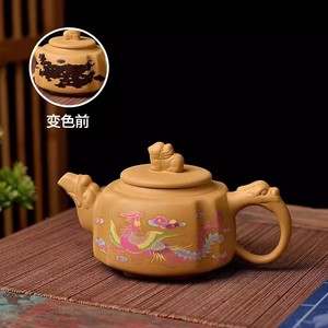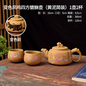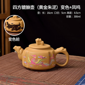 黄金段泥四方貔貅遇热变色断水凤鸣壶紫砂家用泡茶壶手工茶具套装