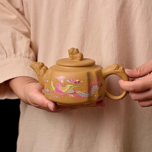 【礼盒款1壶2杯】粉龙凤四方貔貅壶-黄金段泥
