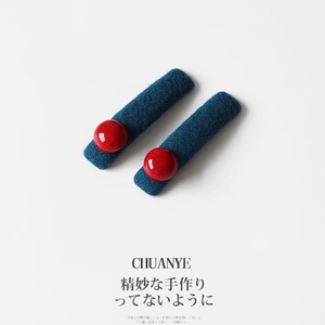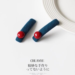 川野红珠子撞色发夹小众发饰蓝色侧边夹头饰女新款对夹碎发刘海夹