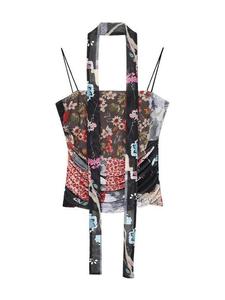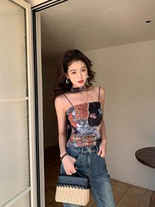 新款抹胸上衣小衫印花夏季气质时尚女小众复古设计网纱美式2025感