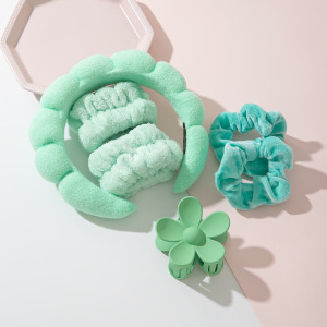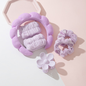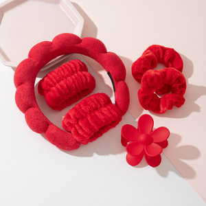 跨境爆款多用云朵发箍手腕带花朵抓夹丝绒大肠圈发圈6件套时尚饰