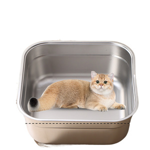 ステンレス製の家庭用特大猫トイレ、高さのある猫トイレ、飛沫防止、お手入れ簡単、猫専用製品
