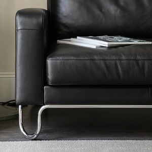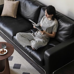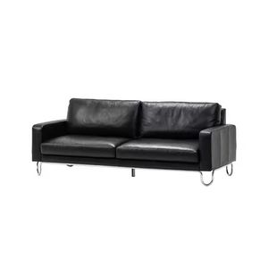 包豪斯中古复古风全真皮高靠背U沙发客厅小户型黑色牛皮直排沙发