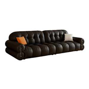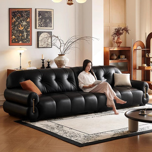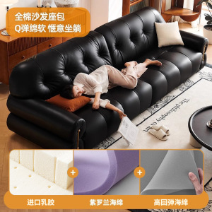 艾沃适 黑色钢琴键真皮沙发复古风大户型政府补贴棉花糖皮质沙发