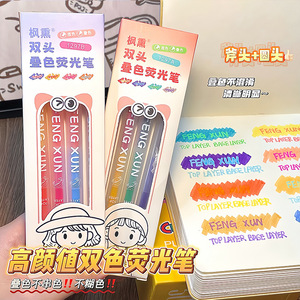 高颜值双头叠色荧光笔斧头+圆头荧光标记笔学生彩色划重点手账笔