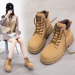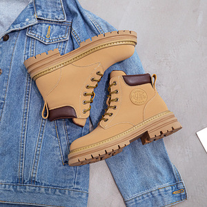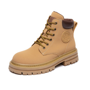 内增高马丁靴女靴子2025新款秋冬真皮厚底大头短靴复古高帮大黄靴