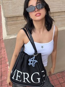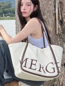 MERGE 单肩包帆布包包跨境女包时尚简约纯色抽绳女士联名子母包