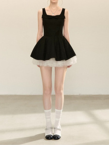 富家千金风吊带连衣裙夏季收腰显瘦高级感拼接网纱蓬蓬裙女