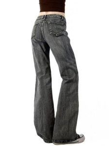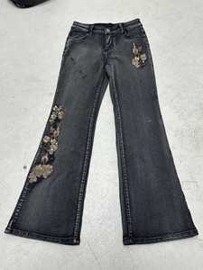春款时尚双侧珠片绣重工概要显瘦牛仔微喇裤宽松百搭直筒休闲裤