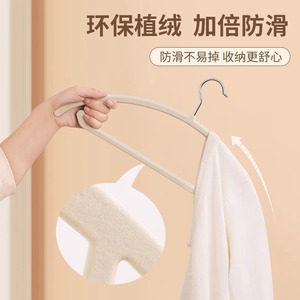 推荐省空间植绒衣架家用弧形无痕防滑衣撑仿肩角不起包收纳整理师
