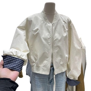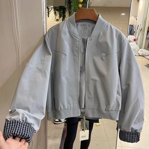 上衣小个子2025女外套立领春季夹克宽松拼接挽袖格子韩版短款新款