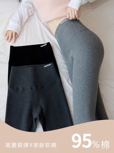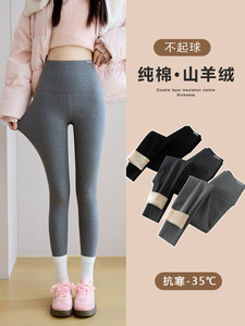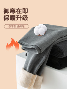 中灰色纯棉竖条高腰打底裤加绒加厚山羊绒秋冬保暖显瘦小脚裤外穿