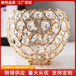 跨境热卖水晶茶蜡杯派对婚庆装饰品亚马逊创意镂空烛台餐桌摆件