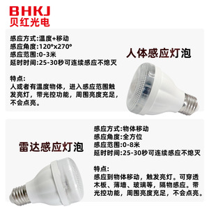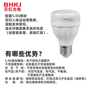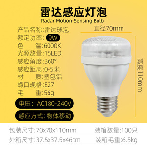 微波雷达5.8G感应灯抗干扰人体感应灯泡E27红外线塑包铝球泡LED灯