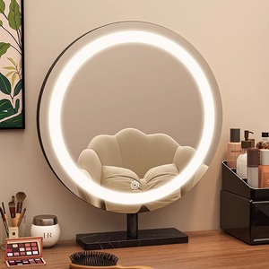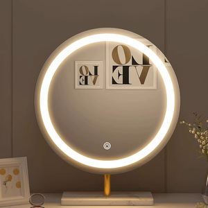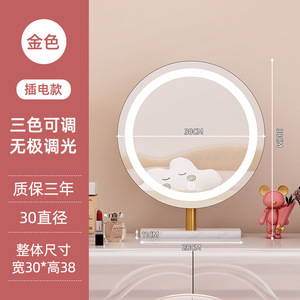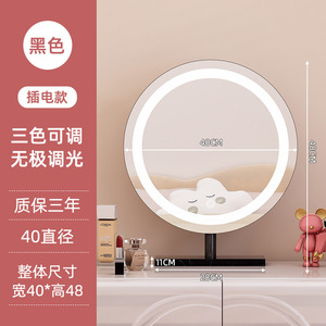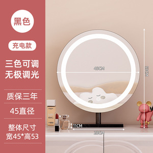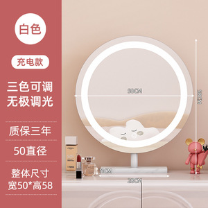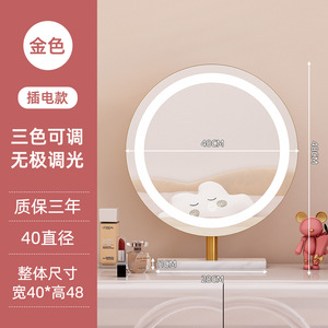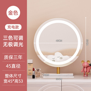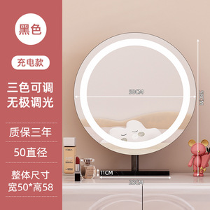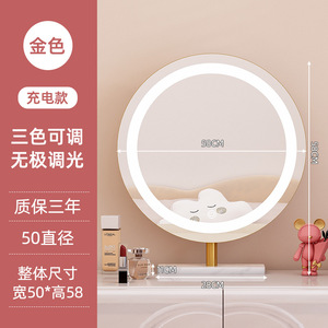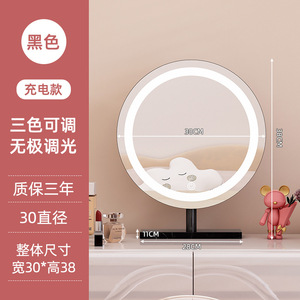 轻奢led带灯化妆镜台式桌面梳妆台宿舍卧室补光充电可旋转大镜子