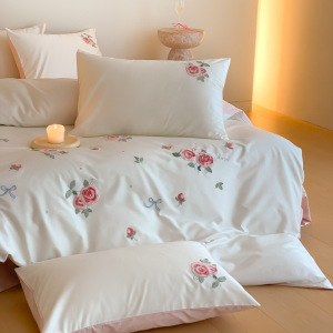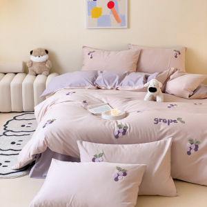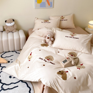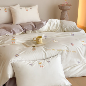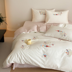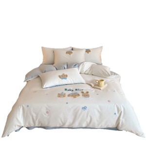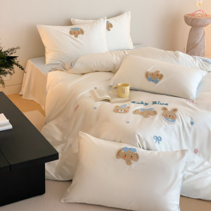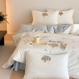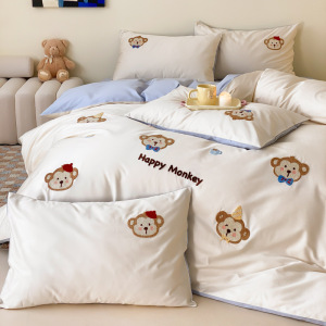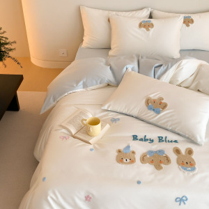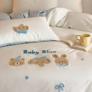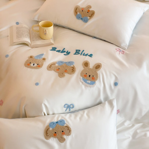 A类全棉拼色卡通四件套可爱立体毛巾绣被套纯棉浅色床单儿童卧室