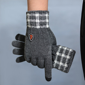 手套男加厚触屏毛线针织手套五指手套加绒保暖防寒中学生游戏手套