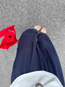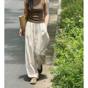 藏青色弯刀裤女夏季薄款2025新款高腰垂感宽松休闲天丝亚麻阔腿裤