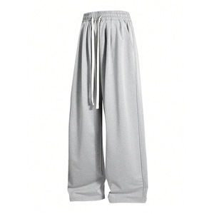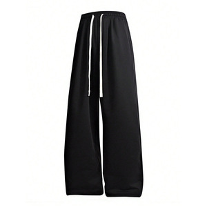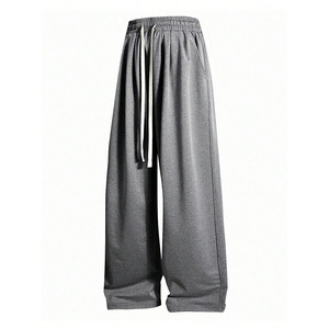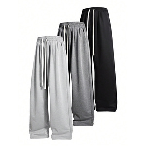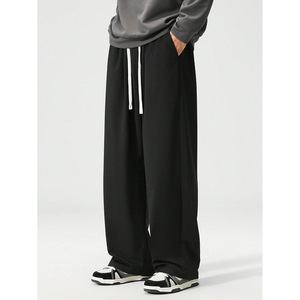 跨境欧美直筒宽松纯色休闲裤男士春秋新款运动裤简约设计感长裤子