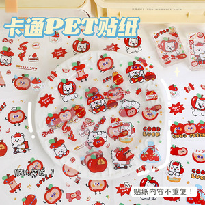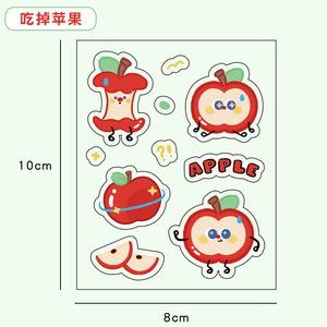 漫画アップルステッカーかわいい透明 PET ステッカー漫画防水ステッカー DIY ハンドブックステッカー携帯電話ウォーターカップ