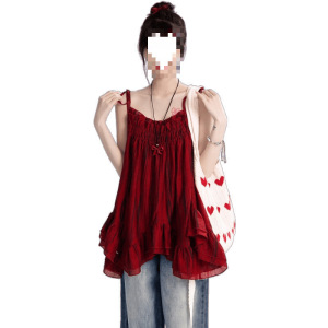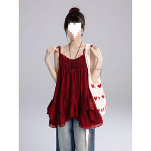 甜鱼少盐 红莓糖纸红色连衣裙套装女夏季甜美小个子裙子两件套麻