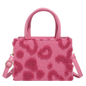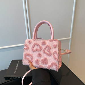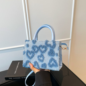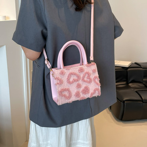 经典百搭立体爱心毛绒图案方包2025大容量洋气潮流斜挎包上班通勤