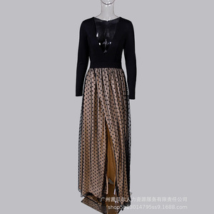 特价欧美时尚女士长袖深V修身连衣裙HDZ0208