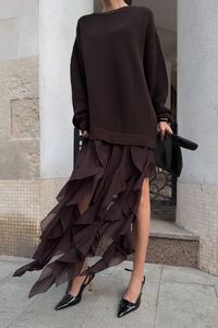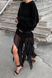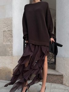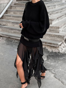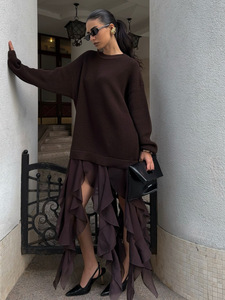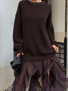 2025欧美新款美拉德设计感针织衫女小众不规则蕾丝拼接毛衣女外穿